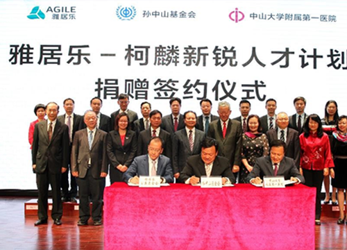 2017年,雅居樂在中山大學附屬第一醫(yī)院(以下簡稱“中山一院”),向中山大學捐贈一千萬元人民幣,設(shè)立“中山大學-雅居樂慈善發(fā)展基金”。同時通過孫中山基金會,向中山一院捐贈五千萬元人民幣,推行“雅居樂—柯麟新銳人才計劃”,助力高水平人才引進和培養(yǎng)。