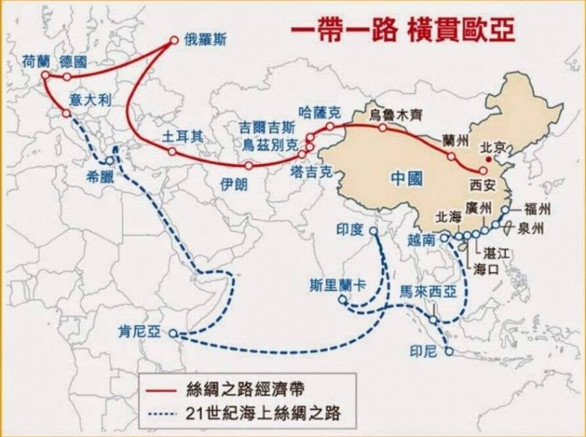 2013年9月和10月,中國分別向世界提出了建設(shè)“新絲綢之路經(jīng)濟(jì)帶”和“21世紀(jì)海上絲綢之路”的合作倡議。這兩份倡議現(xiàn)在通常合稱為“一帶一路”。