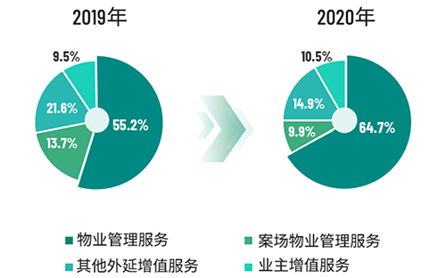 規(guī)模擴(kuò)張、多元發(fā)展是當(dāng)下物企破圈前行的核心競爭力。2020年,雅生活集團(tuán)通過獲取股東優(yōu)質(zhì)項目、第三方市場拓展等內(nèi)生增長模式,協(xié)同資本驅(qū)動外延增長,助力集團(tuán)規(guī)模強(qiáng)勢增長,業(yè)態(tài)布局均衡,進(jìn)一步深化了全業(yè)態(tài)、全產(chǎn)業(yè)鏈布局。按在管面積劃分,住宅40.4%,公建46.5%,商業(yè)及綜合體13.1%。按收入劃分,住宅43.1%,非住宅56.9%。在合約面積中,第三方項目占比提升至74.1%。