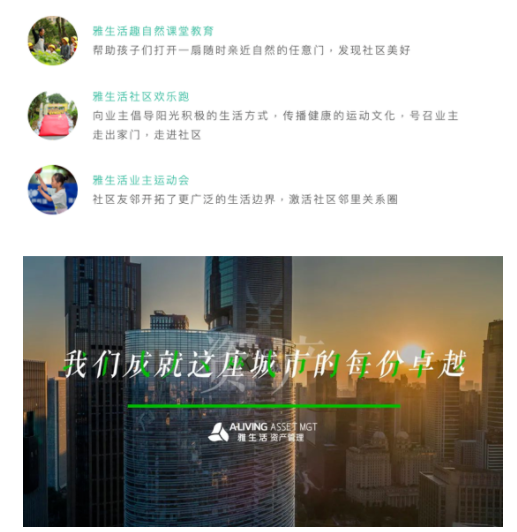我們以新生無界的信念,用革新的力量重新理解未來的社區(qū)服務(wù),商企服務(wù),鄉(xiāng)鎮(zhèn)服務(wù),城市服務(wù)。未來雅生活將繼續(xù)在深耕各業(yè)態(tài)領(lǐng)域,不斷提升品牌價(jià)值,以全新的品牌理念引領(lǐng)行業(yè)進(jìn)入發(fā)展新十年。