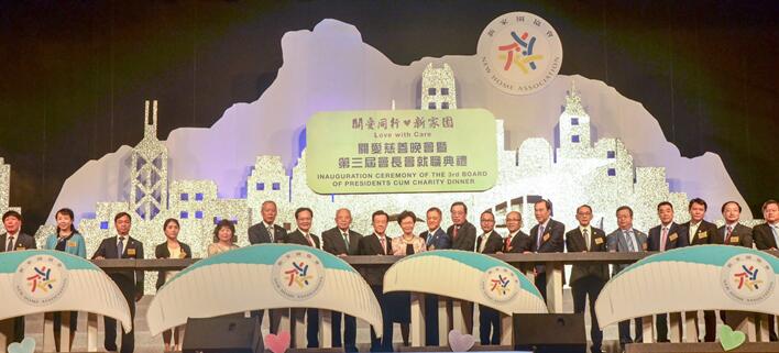 6月10日,以“關(guān)愛同行·新家園” 為主題的新家園協(xié)會慈善晚會暨第三屆董事會就職典禮在香港會展中心圓滿舉行。全國政協(xié)副主席董建華、中聯(lián)辦副主任陳冬、香港行政長官梁振英、香港候任行政長官林鄭月娥、香港立法會主席梁君彥、新家園協(xié)會會長許榮茂、監(jiān)事會主席李思廉及雅居樂集團(tuán)主席陳卓林等與來自政界、社福界、商界和演藝界精英近千人,共同見證該會宣布?xì)v年累積籌款逾4億港元。中聯(lián)辦主任張曉明為新家園品牌活動“四海一家”親書題字,由陳冬于晚宴上代表致送。